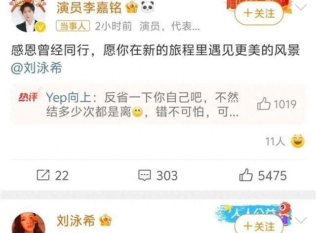 娱乐圈的另一对璧人刘泳希和李嘉铭最近也官宣了离婚。