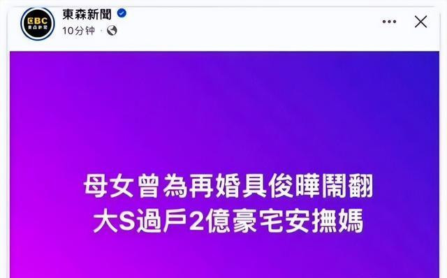 报道称,大S的母亲对于女儿再婚事件态度消极,甚至产生了较大的争议。