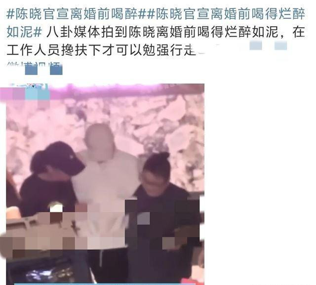 在离婚前,陈晓因醉酒行为被拍到,给人留下了错综复杂的猜测空间。